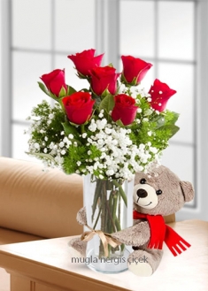 7 Kırmızı Gül ve Ayıcık